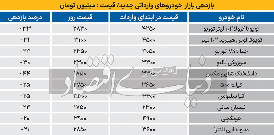 بااینحال محاسبات نشان میدهد قیمت خودروهای خارجی جدید (با ملاک قرار دادن ۱۰ خودروی منتخب در این گزارش) بین ۲۰ تا ۴۴ درصد افت کرده است.