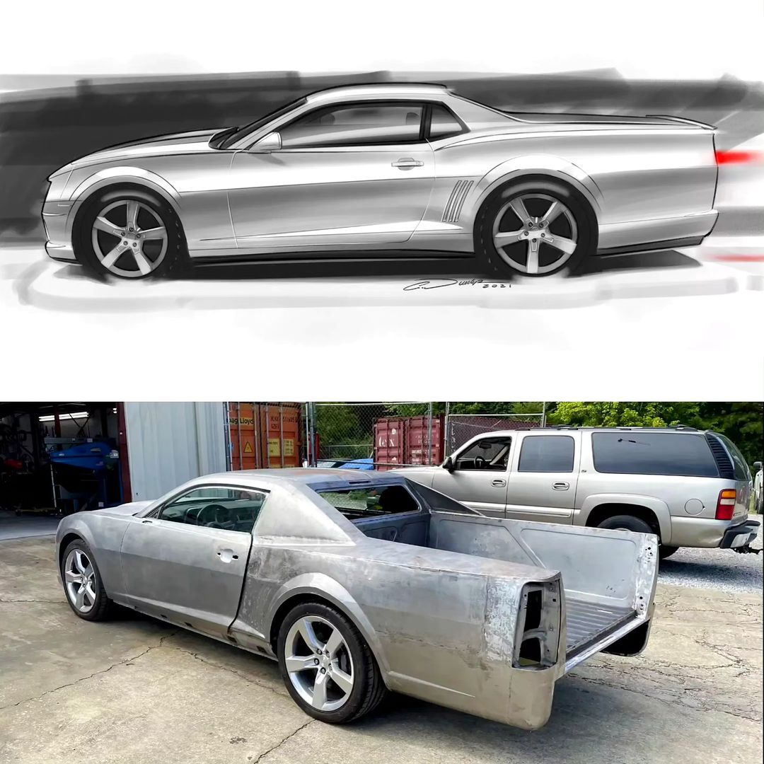 پس از مرحله اولیه طراحی پروژه ای که ال کامینو2 نام گرفت؛ تیونر قسمت عقب خودرو کامارو را قطع کرد و جزئیات لازم بخش عقب را برای جانمائی قسمت بار فراهم کرد.