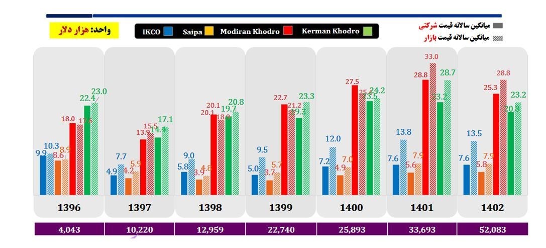 روند میانگین قیمت محصولات شرکت های خودروساز بر مبنای دلار به شرح زیر است: