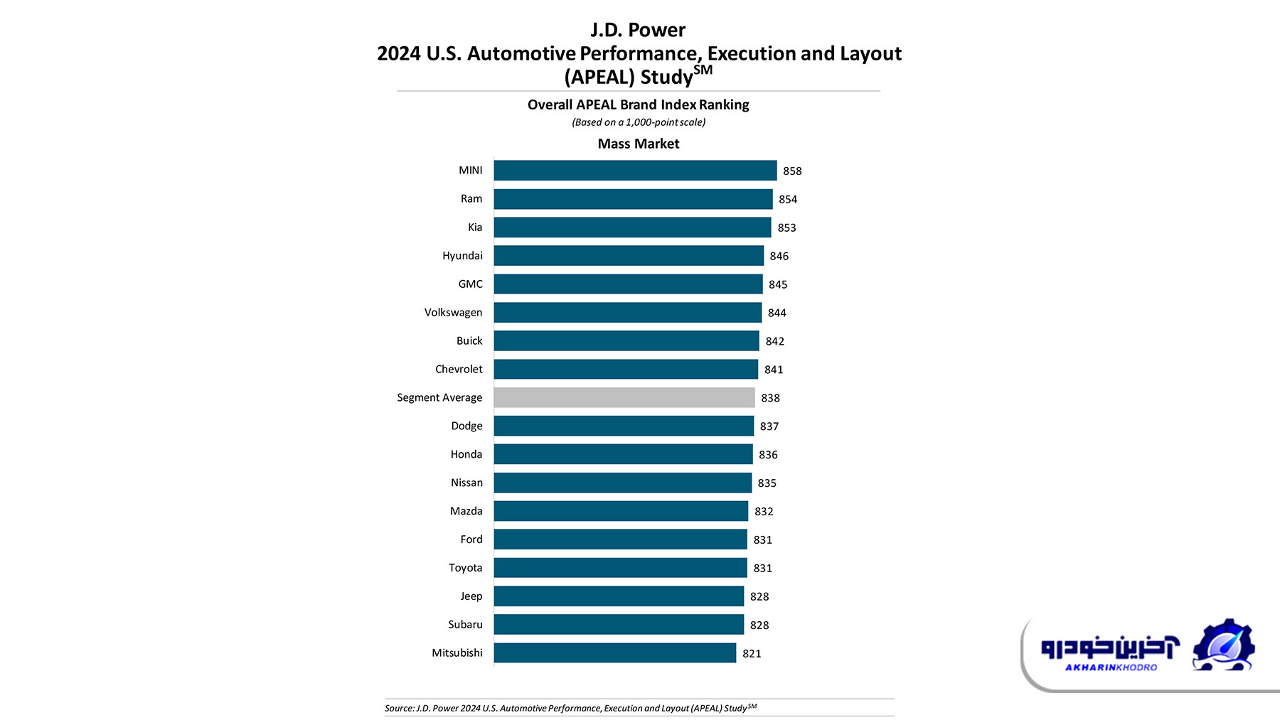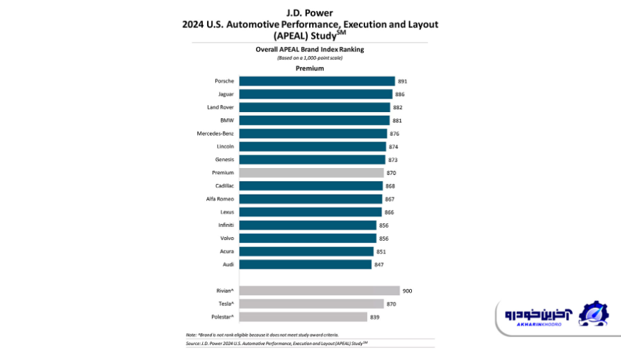 / جی دی پاور نتایج مربوط به تحقیق APEAL برای سال ۲۰۲۴ را منتشر کرد. نکته جالب اینکه در این دوره برند ریوین به عنوان یکی از تازه واردهای بازار بسیار خوش درخشیده و در صدر قرار گرفته است. این امر به معنای آن است که ریوین راضیترین مشتریان را در بین تمامی برند های خودرویی دارد.