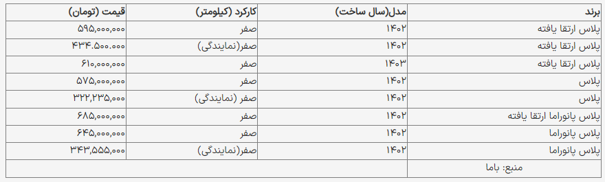 مدل ۱۴۰۲ رانا پلاس ارتقا یافته ۵۹۵ میلیون تومان است.