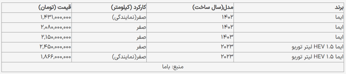 قیمت لاماری ایما HEV ۱.۵ لیتر توربو مدل ۲۰۲۳، ۲ میلیارد و ۴۵۰ میلیون تومان شد.