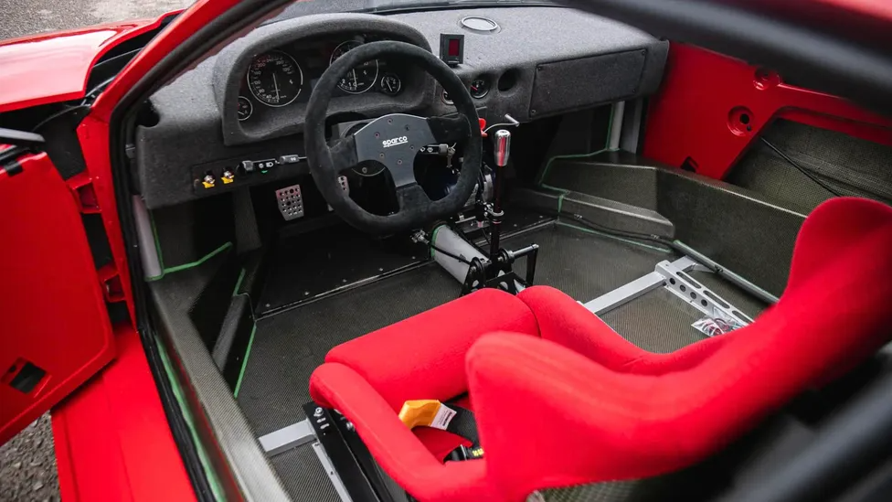 کیت بدنه آیرودینامیک هم F40 GTR را برای هر نوع مسابقه یا رویداد روز پیست آماده میکند تا مالک متمول آن نهایت لذت را از خودروی V12 خود ببرد. صدای این فراری شنیدنی است و با تکیهبر المانهای آیرودینامیکی یادشده، عملکرد خیرهکنندهای را از خود به نمایش میگذارد. نمای داخلی کابین هم مانند بخشهای بیرونی برای رانندگی مسابقهای آماده شده است؛ میلهای ایمنی تاییدشده توسط FIA پشت سر صندلی راننده قرار گرفتهاند و کلیدهای مسابقهای روی داشبورد هم حالوهوای حضور در لمان را برای او تداعی میکنند.