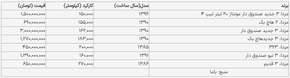 مزدا ۳ قدیم ۶۵۰ میلیون تومان است.
