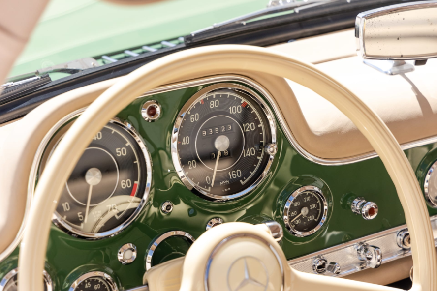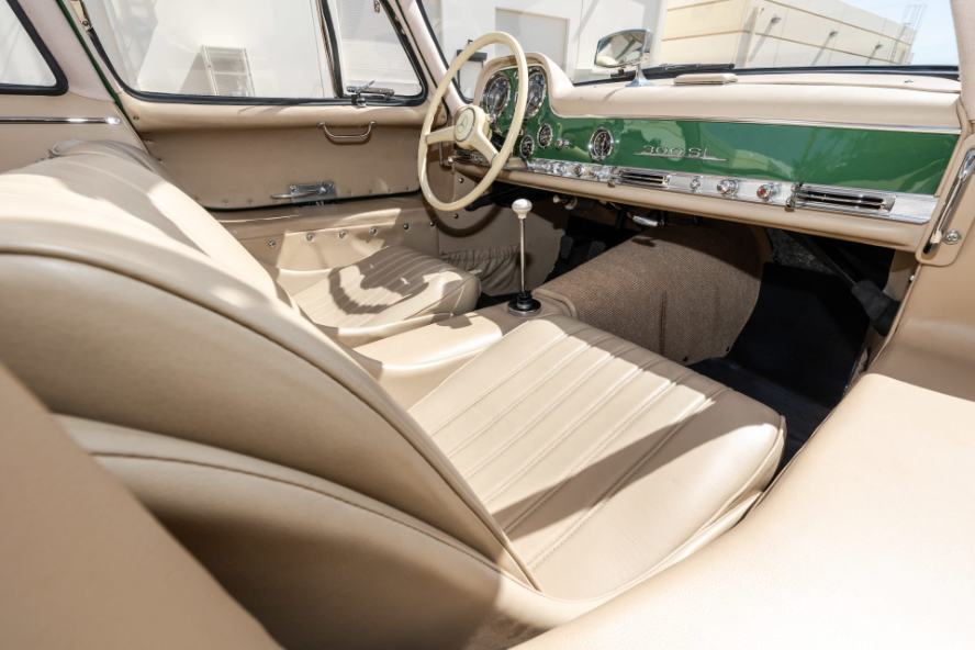 قدرت پیشرانه ۳ لیتری ۶ سیلندر این ۳۰۰SL گالوینگ که توسط مجموعه «اشمیت اتوموتیو ماشین» بازسازی و تمیز شده است، از طریق یک جعبهدنده ۴ سرعتی دستی به چرخهای عقب منتقل میشود. این خودرو علاوهبر قطعات اوریجینالی که دارد، به رنگی منحصربهفرد مزین شده است که در میان تمام مدلهای ۳۰۰SL بیهمتا است. داشبورد خودرو هم برای هماهنگی کابین با بدنه بیرونی به همین رنگ مزین شده است. تنها نقص این مدل را میتوان تفاوت بسیار جزئی رنگبندی داخلی آن با نمونه کارخانه دانست که در ظاهر آن مشکلی ایجاد نکرده است اما از نظر کلکسیونی روی خرید و فروش آن کمی تاثیر دارد.