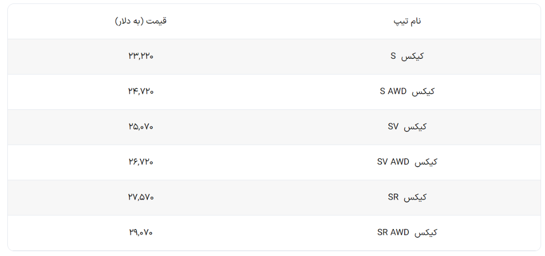 قیمت تیپهای مختلف نیسان کیکس ۲۰۲۵ به شرح زیر است: