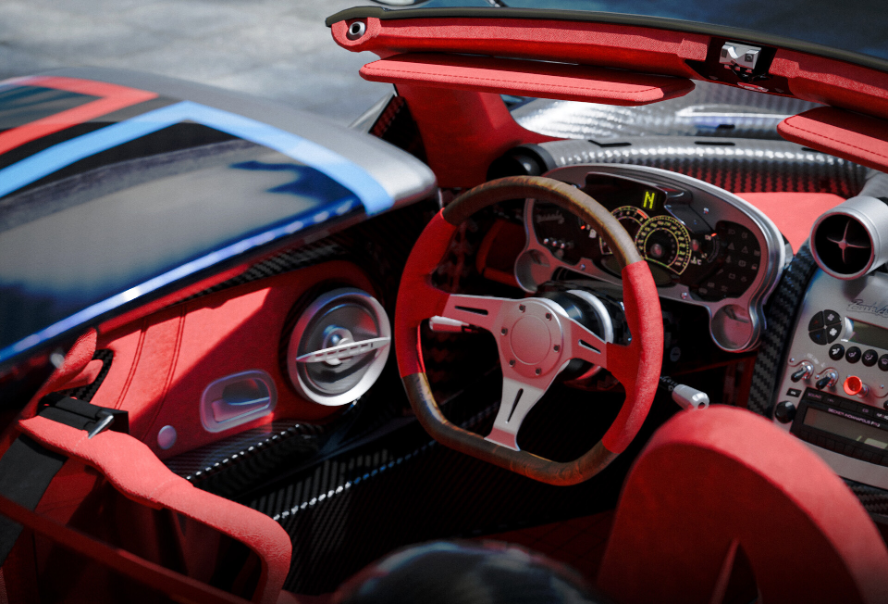نهایتا کابین کلاسیک زوندا هم پوشیده از فیبرکربن، چوب و چرم رنگ قرمز ملایم دیده میشود که اتفاقا هماهنگی کاملی با رنگ سرخ کالیپرهای ترمزهای کربن سرامیکی جلو و عقب دارد.