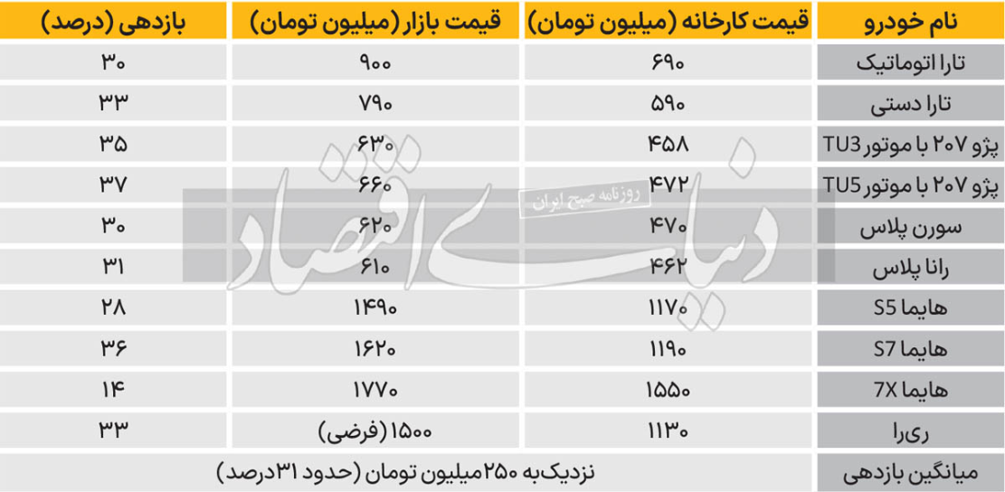 با توجه به اینکه ظرفیت درنظرگرفته شده برای فروش جدید خودرو چیزی حدودا 120هزار دستگاه است، میتوان با یک حساب سرانگشتی مشخص کرد که چه میزان رانت از دل این فروش در بازار خودرو توزیع خواهد شد. طبق محاسبات، میانگین بازدهی قیمتی فروش جاری چیزی حدود 250میلیون تومان است. با ضرب این عدد در حدودا 120هزار خودروی عرضهشده، میانگین مجموع اختلاف قیمت کارخانه و بازار طرح فروش جاری به نزدیکیهای 30هزار میلیارد تومان میرسد.