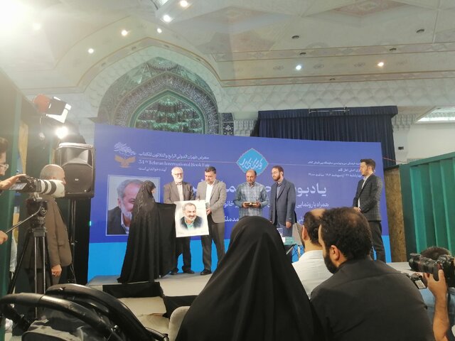 در ادامه مراسم با حضور عبداللهی مدیر نشر، جواد محقق، شاعر، علی رمضانی، قائممقام نمایشگاه و میثم نیلی، مدیرعامل مجمع ناشران انقلاب اسلامی از خانواده عماد افروغ تجلیل شد.
