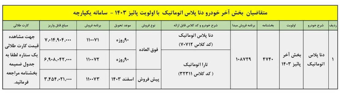 شرایط جدید فروش دنا پلاس اتوماتیک