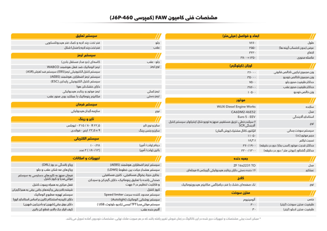 کاتالوگ رسمی کامیون کمپرسی فاو ۴۶۰