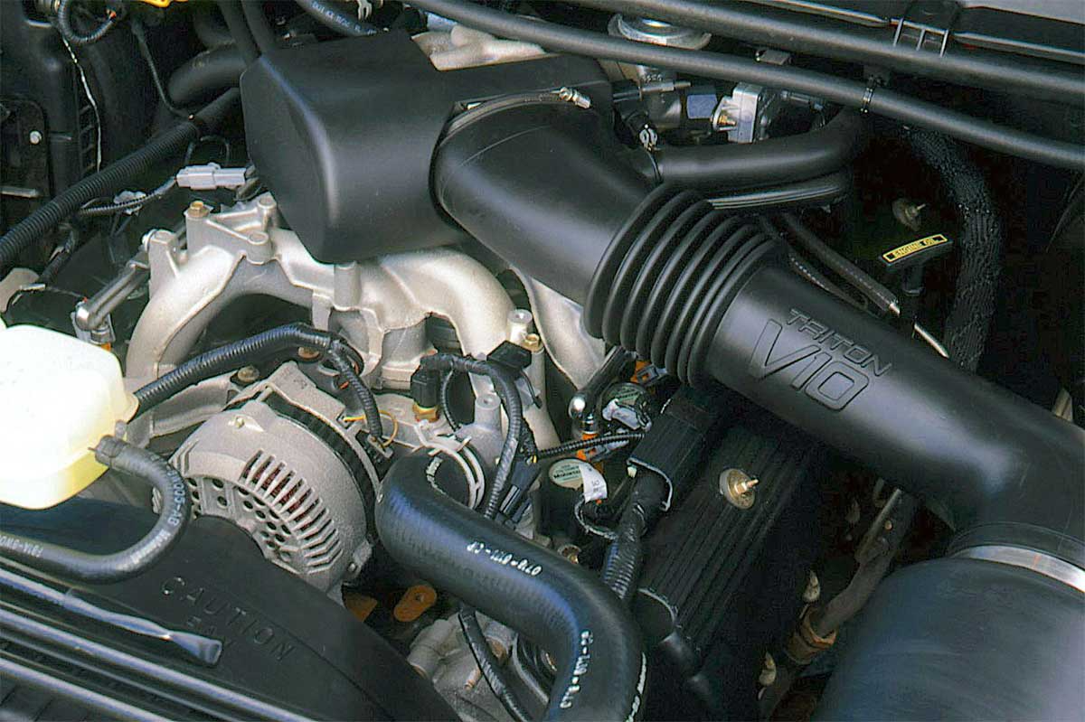 از سوی دیگر، فورد برای اولین بار در سال ۱۹۹۷ پیشرانهٔ V10 خود را با نام ترایتون معرفی کرد. این پیشرانه که تا سال ۲۰۲۱ تولید میشد، از خودروهای مختلفی از پیکاپهای سنگین گرفته تا ونهای سری E و حتی شاسیبلند اکسکرشن مورداستفاده قرار گرفت. این پیشرانه عضوی از خانوادهٔ موتورهای ماژولار فورد بود و کورس پیستون و قطر سیلندر یکسانی با پیشرانهٔ کوچکتر ۵.۴ لیتری V8 فورد داشت که فقط دو سیلندر به آن اضافه شده بود. این پیشرانه زمانی که در سال ۱۹۹۷ معرفی شد، با ۶.۸ لیتر حجم، ۲۷۵ اسب بخار قدرت و ۵۷۵ نیوتن متر گشتاور تولید میکرد اما زمانی که از روی خط تولید کنار رفت، این اعداد به ۳۶۲ اسب بخار و ۶۲۴ نیوتن متر رسیده بودند.