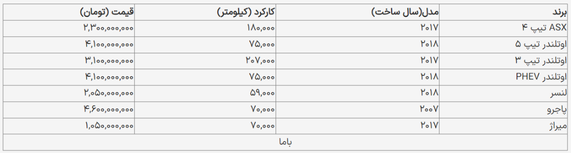قیمت مدل های کارکرده «میتسوبیشی» در بازار آزاد