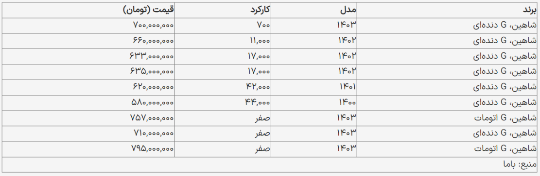 با مطالعه جدول زیر اطلاعات کاملی درباره قیمت روز خودروهای شاهین به دست خواهید آورد: