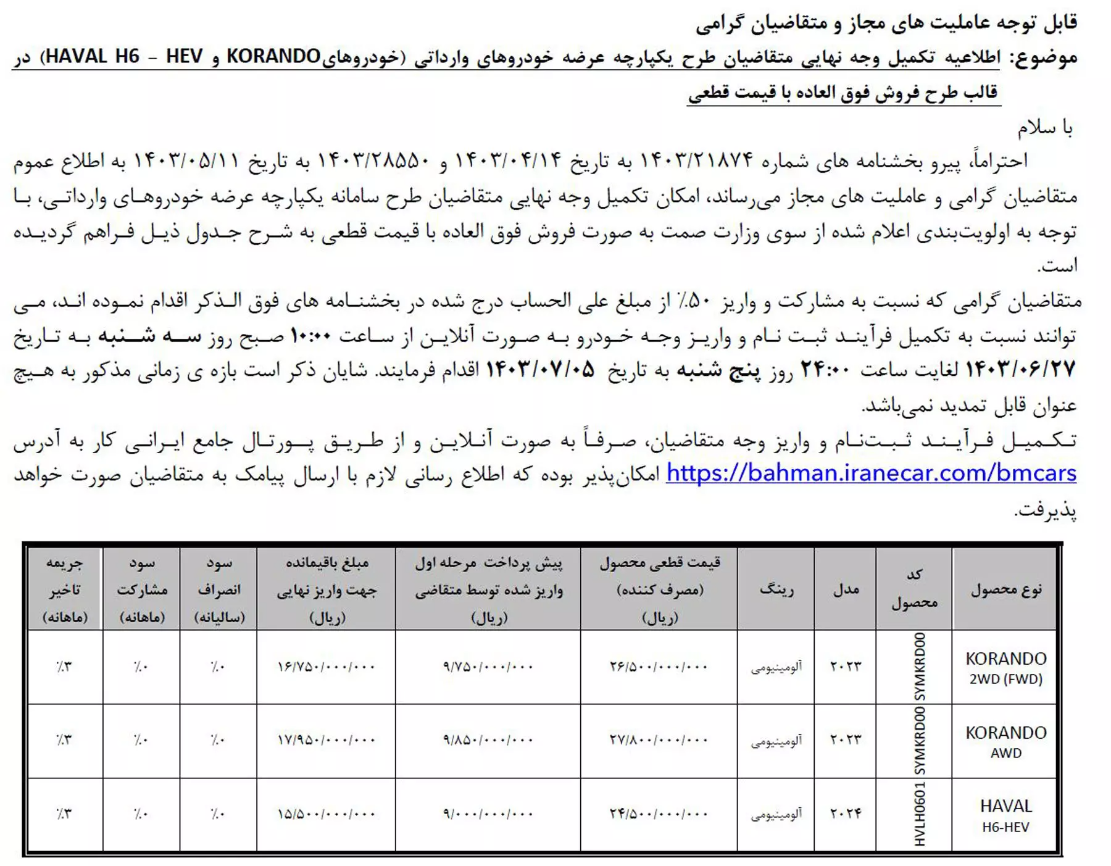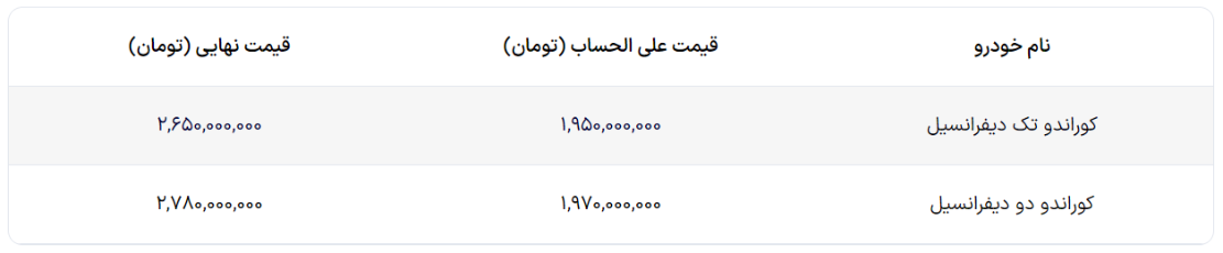 قیمت نهایی کوراندو وارداتی مشخص شد