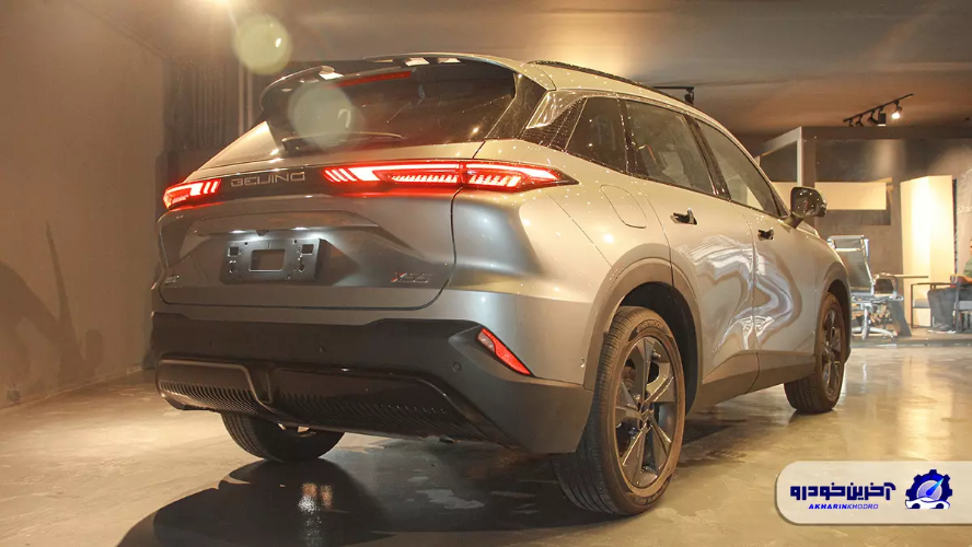 با گذر از دو نمای قبلی و رسیدن به قسمت عقب، باید گفت که از نظر هارمونی میان نماهای مختلف، بیجینگ X55 موفق ظاهر شده است. با این حال نمای کلی عقب در مقایسه با نمای جلو به واسطه خطوط و سطوح نرم تر، کمی خلق و خوی آرام تری هم دارد. فرم چراغ های یک تکه عقب در کنار گرافیک جذاب ان، همچنان از مفهوم «ستاره های دنباله دار» یا « Star Trails» که در چراغ های جلو نیز شاهدش بودیم، پیروی می کند.