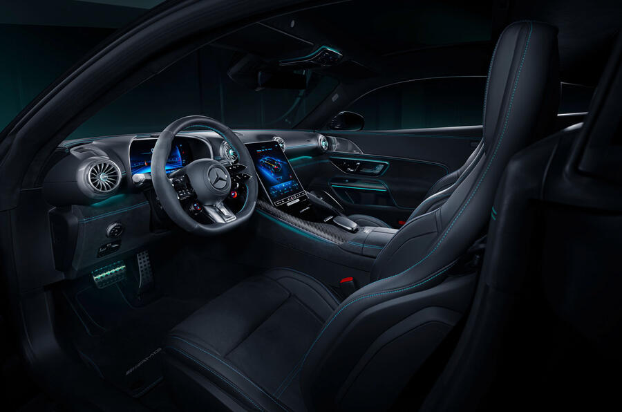 از دیگر ویژگیهای خاص مرسدس AMG GT موتور اسپرت کالکتورز ادیشن میتوان به عناصر آبی رنگ در بدنه، خط شانه خودرو و رینگهای ۲۱ اینچی و کالیپرهای ترمز اشاره کرد. خودروی موردبحث همچنین از پکیج نایت AMG سود میبرد که طرح کروم نسخه استاندارد را تغییر داده و باعث میشود جلوپنجره و نشانهای مرسدس رنگ مشکی داشته باشند. سقف پانورامیک و اسپویلر عقب ثابت هم تکمیل کننده ظاهر خودرو هستند. وقتی وارد کابین AMG GT موتور اسپرت کالکتورز شوید شاهد پوشش چرم ناپا مشکی و میکروفیبر با دوختهای متضاد خواهید شد. رکابهای در نیز رنگ پتروناس را به خود گرفتهاند. باید دانست همه ۲۰۰ دستگاه تولیدی از GT موتور اسپرت کالکتورز ادیشن با پوشش خاص پانل درها عرضه خواهند شد. مرسدس هنوز قیمت خودروی خود را اعلام نکرده اما به احتمال زیاد قیمتی فراتر از بهای حدود ۲۴۱ هزار دلاری مدل GT 63 لانچ ادیشن خواهد داشت.