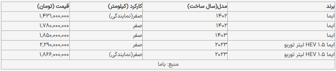 همچنین قیمت ایما HEV ۱.۵ لیتر توربو در نمایندگی ۱ میلیارد و ۸۶۶ میلیون تومان است.