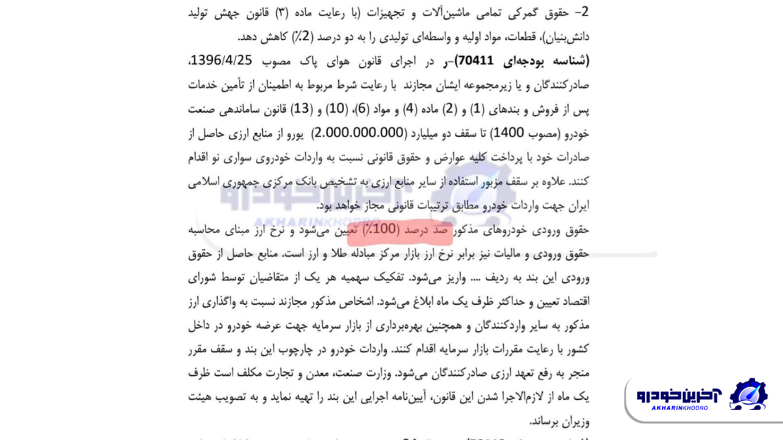 اما چیزی که از این لایحه بر می آید، دولت چهاردهم تعرفه کلی واردات خودرو را ۱۰۰ درصد در نظر گرفته و به نظر می رسد که دولت آقای پزشکیان به جریان واردات خودرو به عنوان منبع درآمد نگاه می کند و نه ابزاری برای تنظیم قیمت ها، که بر اساس تعرفه ۱۰۰ درصدی که دولت چهاردهم برای سال ۱۴۰۴ در نظر گرفته است، واردات خودرو افزایش در آمد حاصله از واردات خودرو را برای دولت به ارمغان می آورد که مسلما فشار آن بر روی متقاضیان خودرو های وارداتی و همچنین شرکت های وارد کننده خواهد بود.