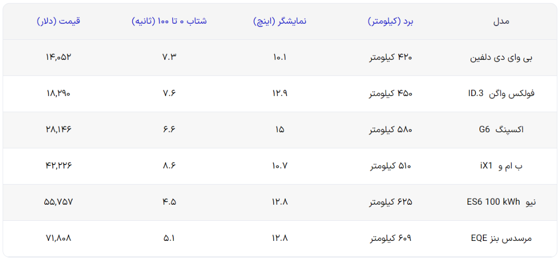 در جدول زیر میتوانید مشخصات و قیمت برخی مدلهای چینی و آلمانی را مقایسه کنید.