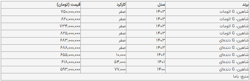 با مطالعه جدول زیر اطلاعات کاملی درباره قیمت روز خودروهای شاهین به دست خواهید آورد: