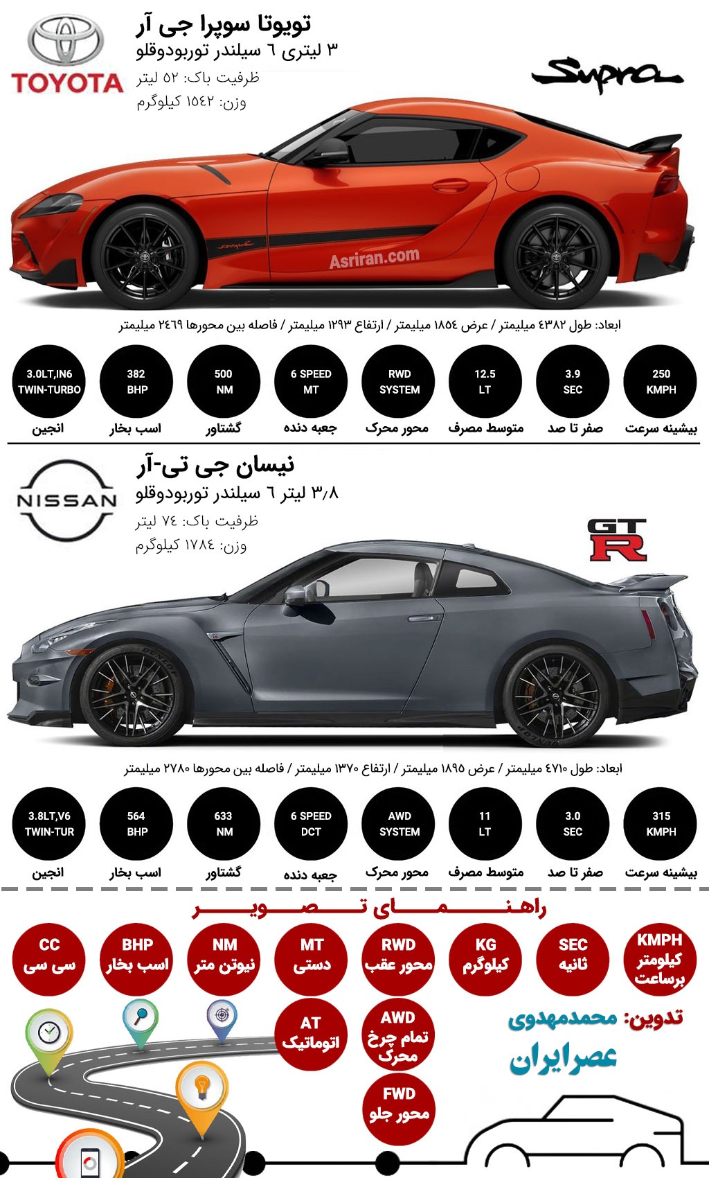 عصر ایران/ از طراحی خیرهکننده تا موتورهای توربودوقلو قدرتمند، تویوتا سوپرا جیآر با موتور ۳ لیتری و نیسان جیتیآر با موتور ۳.۸ لیتری، دو انتخاب بینظیر برای رانندگان عاشق سرعت هستند. در این مقایسه، نگاهی دقیق به مشخصات و تفاوتهای این دو خودرو میاندازیم.