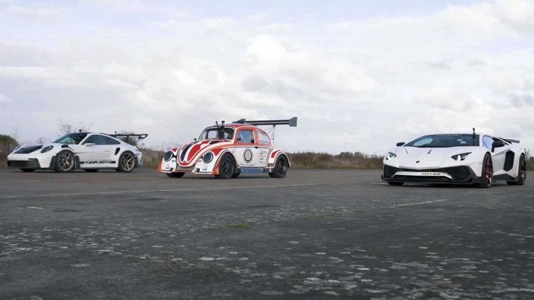 درگ بیتل مجهز به موتورهای تسلا با پورشه 911 GT3 RS و اونتادور SV!