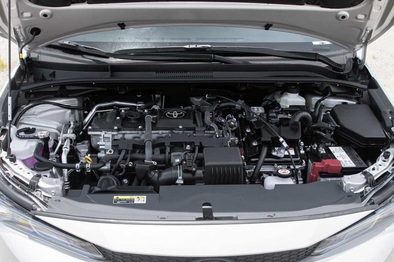 همانطور که اشاره شد، لوین در دو نسخهٔ ۱.۸ لیتری هیبریدی و ۱.۲ لیتری توربو به ایران وارد شده که در اینجا به بررسی نسخهٔ هیبریدی میپردازیم. قوای محرکهٔ این مدل از یک پیشرانه ۱.۸ لیتری چهار سیلندر تنفس طبیعی بنزینی تشکیل شده است که بهتنهایی ۹۸ اسب بخار قدرت و ۱۴۲ نیوتن متر گشتاور تولید میکند. در کنار این، یک موتور الکتریکی هم با ۹۵ اسب بخار قدرت وجود دارد. مجموع خروجی این سیستم ۱۳۷ اسب بخار است که باعث میشود لوین هیبریدی هم از نسخهٔ ۱.۲ لیتری توربو و هم کرولای ۱.۵ لیتری سه سیلندر قویتر باشد. بااینوجود، چنین قدرتی هنوز هم رقم چندان چشمگیری نیست و وقتی در کنار وزن ۱۴۲۰ کیلوگرمی کرولا قرار میگیرد که به خاطر وزن باطری و موتور الکتریکی ۶۰ کیلوگرم از نسخهٔ ۱.۲ لیتری سنگینتر است، نباید انتظار شتاب چندان بالایی را داشته باشیم. همچنین انتقال نیروی این موتور هم توسط یک گیربکس E-CVT صورت میگیرد تا پکیج اقتصادی قوای محرکهٔ لوین وارداتی تکمیل شود.