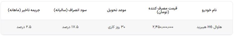 شرایط فروش هاوال H6 هیبرید خارج از سامانه اعلام شد – آذر ۱۴۰۳