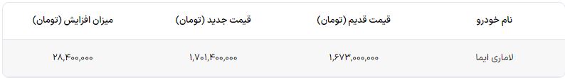 قیمت جدید لاماری ایما با افزایش اعلام شد/ آذر ۱۴۰۳