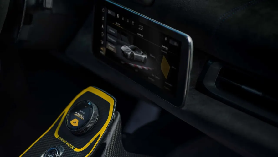 غربیلک فرمان خودرو در مقایسه با MC20 ضخیم تر است، اما کنترل های کمتری روی آن دارد. همه چیز از جمله صفحه نمایش مرکزی 10.25 اینچی به گونه ای طراحی شده تا کاملا در دسترس راننده قرار داشته باشد. یک سیستم صوتی با 6 بلندگو به صورت استاندارد در دسترس است، اما در صورت تمایل می توانید یک سیستم صوتی با 12 بلندگو را سفارش دهید.