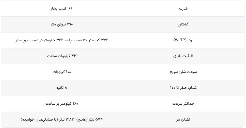 در جدول زیر میتوانید مشخصات فورد Gen-E را به طور خلاصه مشاهده نمایید.