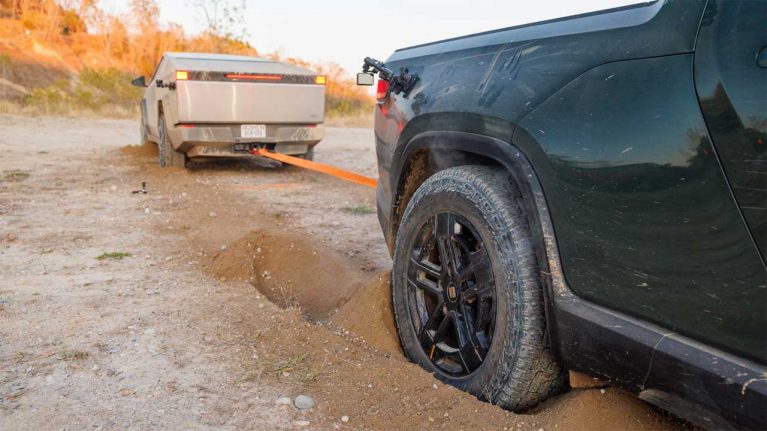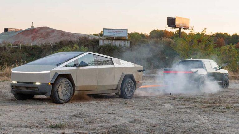 مسابقه طنابکشی بین تسلا سایبرتراک و ریویان R1T