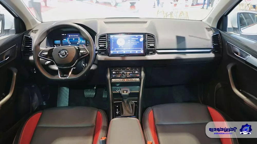 اما از نظر بصری، عناصر و خطوط داشبورد و کنسول، تلفیق درست و اصولی از اجزا افقی و عمودی است که توانسته حالتی متفاوت تری را نسبت به سدان های این برند به نمایش بگذارد. علاوه بر این و با توجه به تجربه ای که از محصولات قبلی اشکودا و فولکس واگن داشته ایم، این ساختار منظم و هندسی کابین باعث بهبود ارگونومی داخلی شده و تمامی کنترلرها به خوبی در دسترس کاربران می باشد و از پیچیدگی های خاصی برخوردار نیستند. ضمن اینکه ارگونومی صندلی ها نیز در کابین کاروک به خوبی رعایت شده است.همچنین جدا بودن نشانگر کلاستر و نمایشگر مرکزی، حالتی کلاسیک را به داخل کابین کاروک ارزانی داشته است.