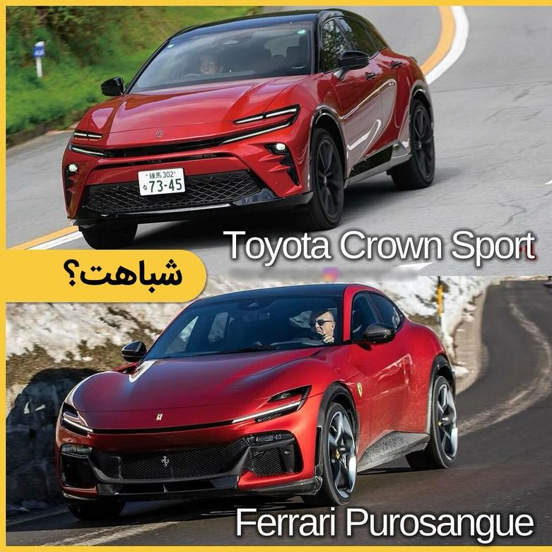 عصر ایران/ تویوتا کراون اسپرت و فراری پوروسانگوئه با وجود تفاوتهای فنی، در طراحی بدنه و المانهای بصری شباهتهایی را به نمایش میگذارند که توجه علاقهمندان به خودرو را جلب کرده است. با توجه به اینکه تاریخ معرفی شاسی بلند فراری قبل از محصول جدید تویوتا یعنی کراون اسپرت است بنابراین اتهام کپی کاری متوجه کمپانی ژاپنی می شود.