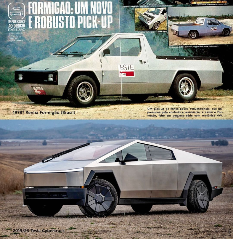 عصر ایران/ رنا فورمیگائو که با نام رنا کایوت نیز شناخته می شد، خودروئی مربوط به دهه هفتاد میلادی(1971) و کشور برزیل است که براساس فولکس واگن بیتل توسعه یافت. شباهت طراحی این خودرو با سایب تراک تسلا همواره از مباحث مورد علاقه محافل خودروئی بوده است. آیا شما هم یک کپی خودروئی می بینید؟