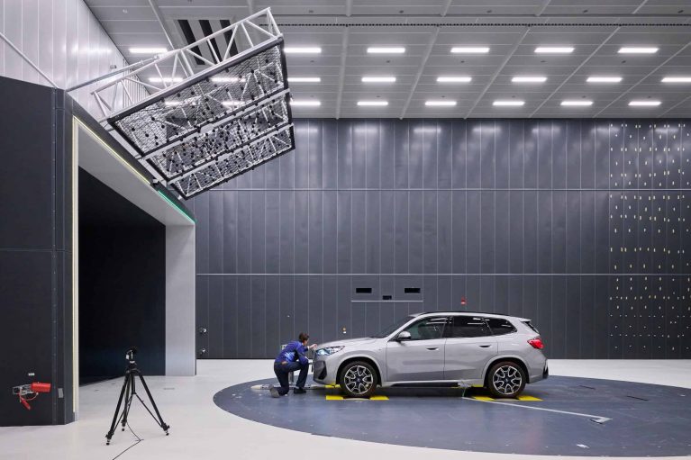 تأسیسات جدید بی ام و به حدی بزرگ است که میتواند بزرگترین خودروهای این گروه همچون X7 و رولزرویس فانتوم را در خود جای دهد. از آنجایی که هیچ خبری از انعکاس صدا نیست بنابراین مهندسان به راحتی میتوانند شرایط جاده را شبیهسازی کنند. یک دمنده بزرگ با ظرفیت ۴.۵ مگاوات نیز نصب شده که در هر دقیقه ۱۰۰ هزار مترمکعب هوا را با سرعت ۲۵۰ کیلومتر در ساعت تولید میکند. این برند میگوید تونل باد عمودی جدیدش ساکتترین تونل باد ایستاده دنیاست و دادههای جمع آوری شده در آن روی محصولات نئو کلاس جدید بکار گرفته خواهند شد.