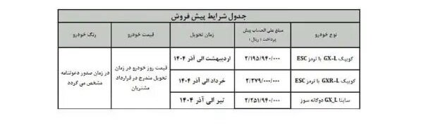این گروه صنعتی، در راستای افزایش عرضه محصولات و همچنین تنظیم قیمت بازار، شرایط پیشفروش ساینا GX-L دوگانه سوز، کوییک GX-L و کوییک GX R-L را ویژه متقاضیان عادی، طرح جوانی جمعیت و حمایت از خانواده و جایگزینی خودروهای فرسوده از ساعت ۱۰ امروز (یکشنبه ٢۵ آذر ماه) از طریق سایت فروش اینترنتی این گروه خودروسازی فعال کرده است.