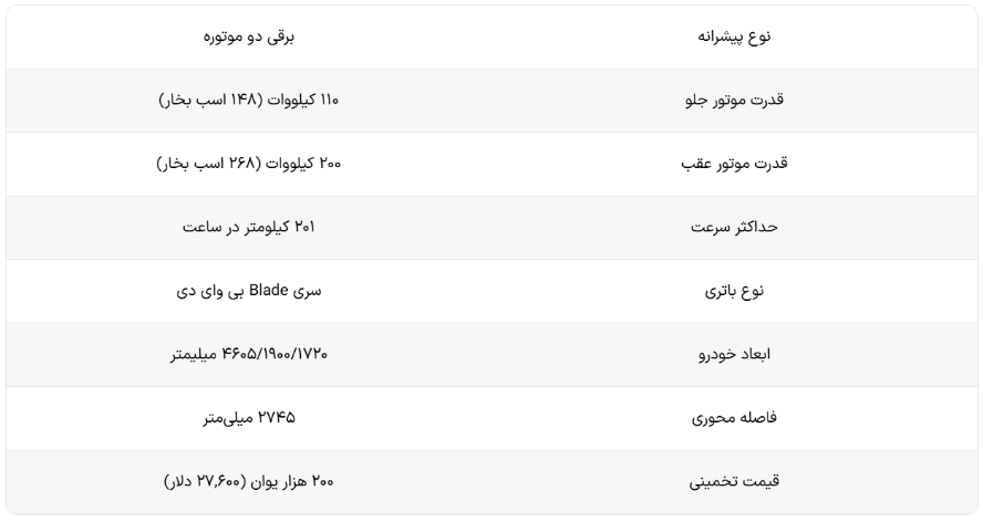 در جدول زیر میتوانید مشخصات شاسیبلند تیتانیوم ۳ را به طور خلاصه مشاهده نمایید.
