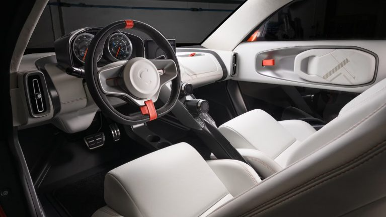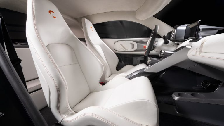 صندلیهای اسپرت، فضای جلوی نیمکت جداشونده عقب را پر کردهاند. هر چند نشستن یک انسان بالغ در آن ممکن نیست اما میتواند فضایی دمدستی را برای جمل وسایل سبک فراهم کند. کالوم فضای دو صندلی جلو را با یک صفحه کربنی از هم جدا کرده تا بتواند کلیدهای گوناگون کنترلی را روی آن کار کند. بالای این حائل، یک نمایشگر میانی و کلیدهای چرخشی لمسی سیستم تهویهمطبوع قرار گرفتهاند.