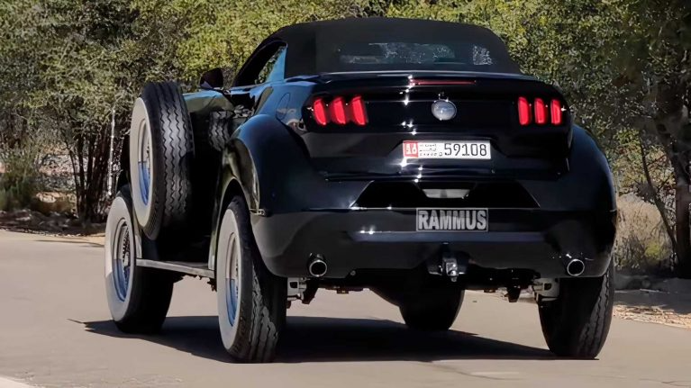خودروی عجیب یاد شده توسط شیخ حمد بن حمدان آل نهیان سفارش داده شده و از شاسی رم استفاده میکند. فورد ماستانگ راموس بخش بالایی بدنه استاندارد ماستانگ را حفظ کرده اما ارتفاع بسیار زیادی از سطح زمین دارد. این محصول عجیب همچنین دارای قوس گلگیرهای بسیار بزرگ است تا بتواند لاستیکهای دیواره سفید گیرا را در خود جای دهد. حتی دو لاستیک زاپاس هم روی گلگیرها نصب شدهاند تا ماستانگ یاد شده را بیش از پیش برجستهتر نمایند.