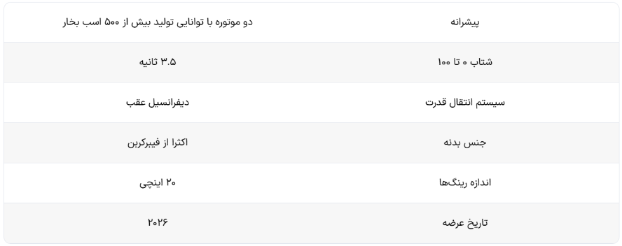 با تصمیم خودروساز فرانسوی، رنو ۵ توربو 3E از سال ۲۰۲۶ به فروش خواهد رسید. در حال حاضر مشخص نیست این هاچبک بسیار قدرتمند با چه قیمتی عرضه خواهد شد. در جدول زیر میتوانید مشخصات این خودرو را به طور خلاصه مشاهده نمایید.