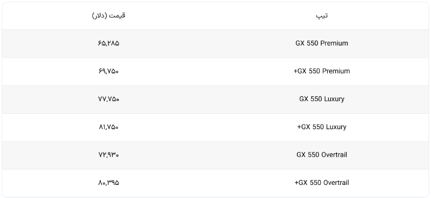 مشخصات فنی لکسوس GX مدل ۲۰۲۵