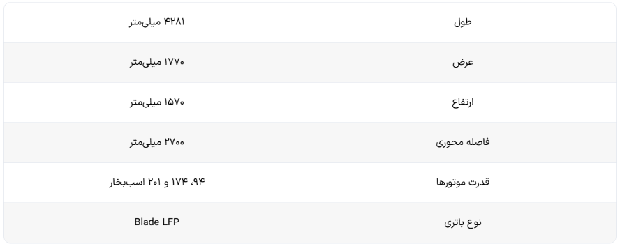 در جدول زیر میتوانید مشخصات بی وای دی دلفین ۲۰۲۵ را به طور خلاصه مشاهده نمایید.