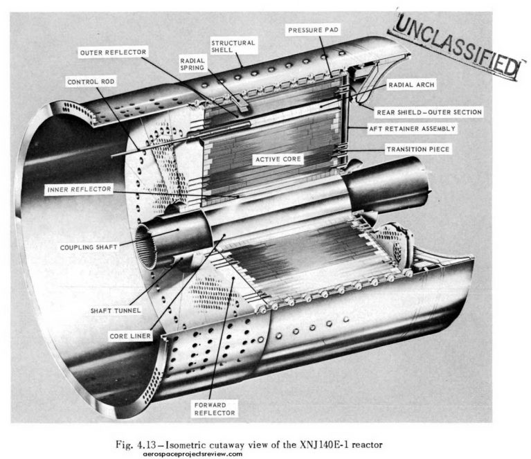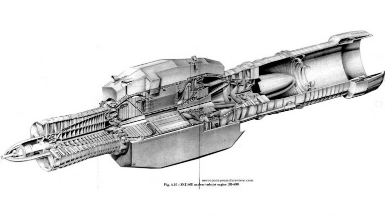 بااینحال، تلاش برای استفاده از انرژی هستهای در هواپیماها با پیشرانهٔ توربوجت هستهای XNJ140E همچنان ادامه پیدا کرد. این موتور هرچند اندازهٔ بزرگی داشت ولی در ظاهر شبیه یک موتور جت معمولی به نظر میرسید. بااینحال، محفظهٔ احتراق موتور حذف شده و جای آن را یک راکتور هستهای ۸۴ در ۱۵۷ سانتیمتری متشکل از ۲۵ هزار میلهٔ سوخت ششضلعی پر از اورانیوم غنیشده گرفته بود. در هستهٔ این رآکتور، هیدروژن مایع بهعنوان منبع سوخت، مستقیماً با مواد شکافتپذیر درون میلههای سوخت راکتور برخورد میکرد تا نیروی دانش ایجاد کند. تخمین زده میشود این رآکتور هنگام برخاستن هواپیما از زمین میتوانست ۱۲۱ مگاوات قدرت تولید کند. این انرژی برای تأمین برق بیش از ۱۰۰ هزار خانه کافی بود! این موتور در سطح دریا میتوانست تا ۱۵۷ کیلو نیوتن رانش تولید کند.