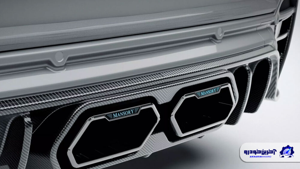 نصب کاپوت فیبرکربنی با دو نوع طراحی، تعویض گلگیرهای استاندارد با گلگیرهای متورم، جایگزینی رینگهای استاندارد با رینگهای بسیار بزرگ ۲۴ اینچی، اضافه شدن اسپویلر سقفی و استفاده از سپر عقب اسپرت از دیگر تغییرات شاخص نمای بیرونی هستند که باید به آنها اشاره کنیم. این سپر چهار خروجی اگزوز لوزی شکل را در خود جای داده است. ناگفته نماند طبق رسم دیرینه منصوری، اکثر قطعات بدنه از جنس فیبرکربن هستند.