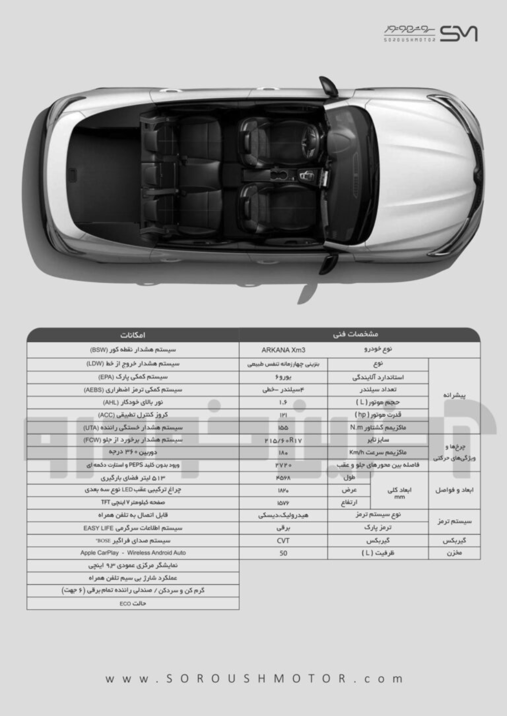 حدود یک سال پیش و در نمایشگاه خودروی تهران اعلام شده بود که سروش موتور قرار است نسخه هیبرید از رنو آرکانا یا همان رنو سامسونگ XM3 را برای بازار ایران مونتاژ کند اما حالا کاتالوگ منتشر شده خبر از عرضه نسخه دیگری می دهد. زیر کاپوت این خودرو یک پیشرانه ۱.۶ لیتری تنفس طبیعی قرار دارد که توان تولید نهایت قدرت ۱۲۱ اسب بخار و حداکثر گشتاور ۱۵۵ نیوتن متر را دارد و قدرت از طریق جعبه دنده CVT به چرخ های جلو می رسد. نکته جالب اینجاست برای محصول جدید رنو در بازار ایران پیشرانه ای قدیمی در نظر گرفته شده که قبل تر در رنو مگان دنده دستی در بازار کشور دیده بودیم. انتظار می رفت سروش موتور برای این خودرو پیشرانه های جدید تر توربو یا هیبرید را در نظر بگیرد اما در نهایت موتوری انتخاب شده که از سال ۲۰۰۴ در محصولات گروه رنو دیده می شود.