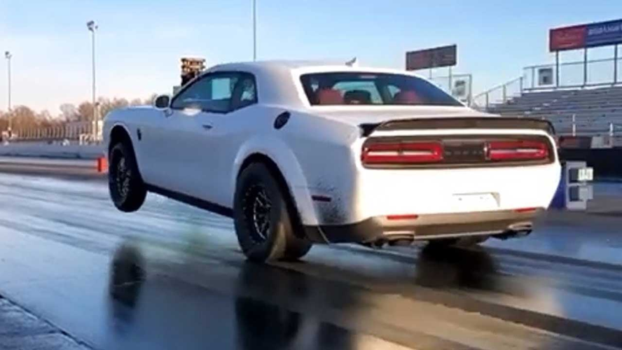 دوج چلنجر دیمن هرچند خودروی بسیار قدرتمندی است ولی کنترل تمام این قدرت نیازمند مهارت زیادی است و به همین دلیل، تاکنون بارها دیدهایم که این خودرو مسافت ۴۰۰ متر درگ را بسیار کندتر از آنچه دوج اعلام کرده طی میکند. بااینحال، اخیراً یک چلنجر دیمن ۱۷۰ توانسته ابن مسافت را در زمانی حتی سریعتر از چیزی که سازنده اعلام کرده است طی کند. ویدئویی که از این رکوردشکنی منتشر شده و تنها ۱۶ ثانیه است، یک هیولای سفیدرنگ را نشان میدهد که مانند گلوله شلیک میشود تا جایی که چرخهای جلوی خودرو از مسیر بلند میشوند.