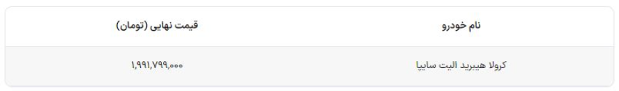 / بر اساس فراخوان های واریز ارسالی برای مشتریان خودروهای وارداتی، سرانجام قیمت کرولا هیبرید سایپا مشخص شده است.