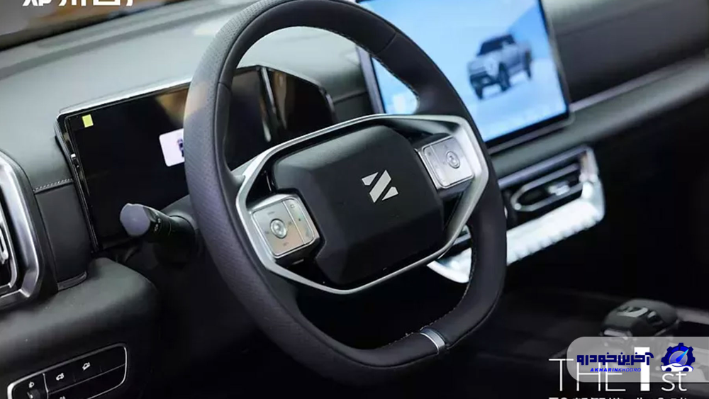 فرمان دو شاخه و خوشفرم دیگر ویژگی جذاب کابین است که با یک قطعه کرومی تزئین شده؛ دکمههای کنترلی روی این قطعه جا خوش کردهاند.